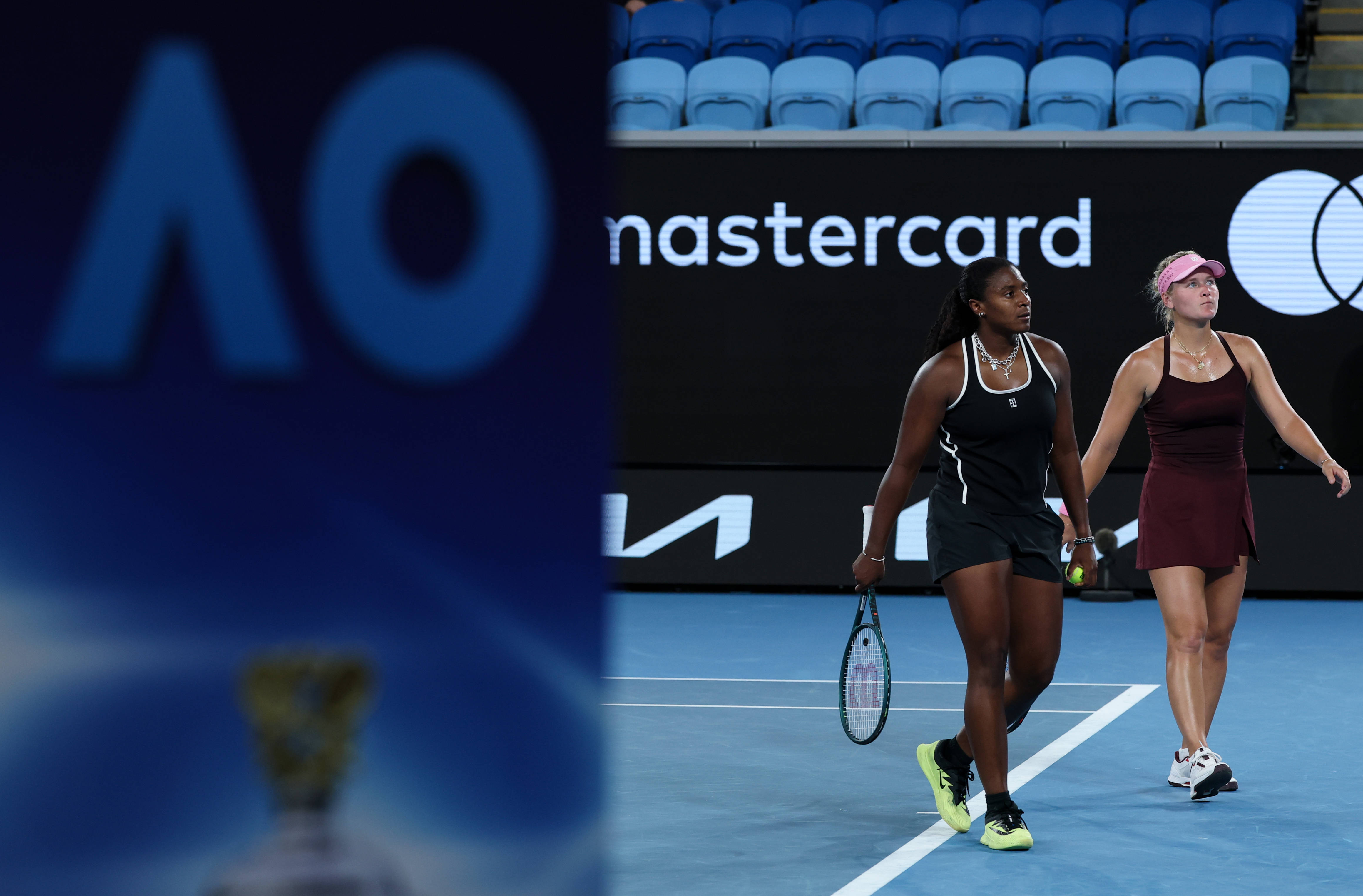 1月27日,美国组合巴普蒂斯特(左)/斯特恩斯在比赛中。 新华社记者 马平 摄