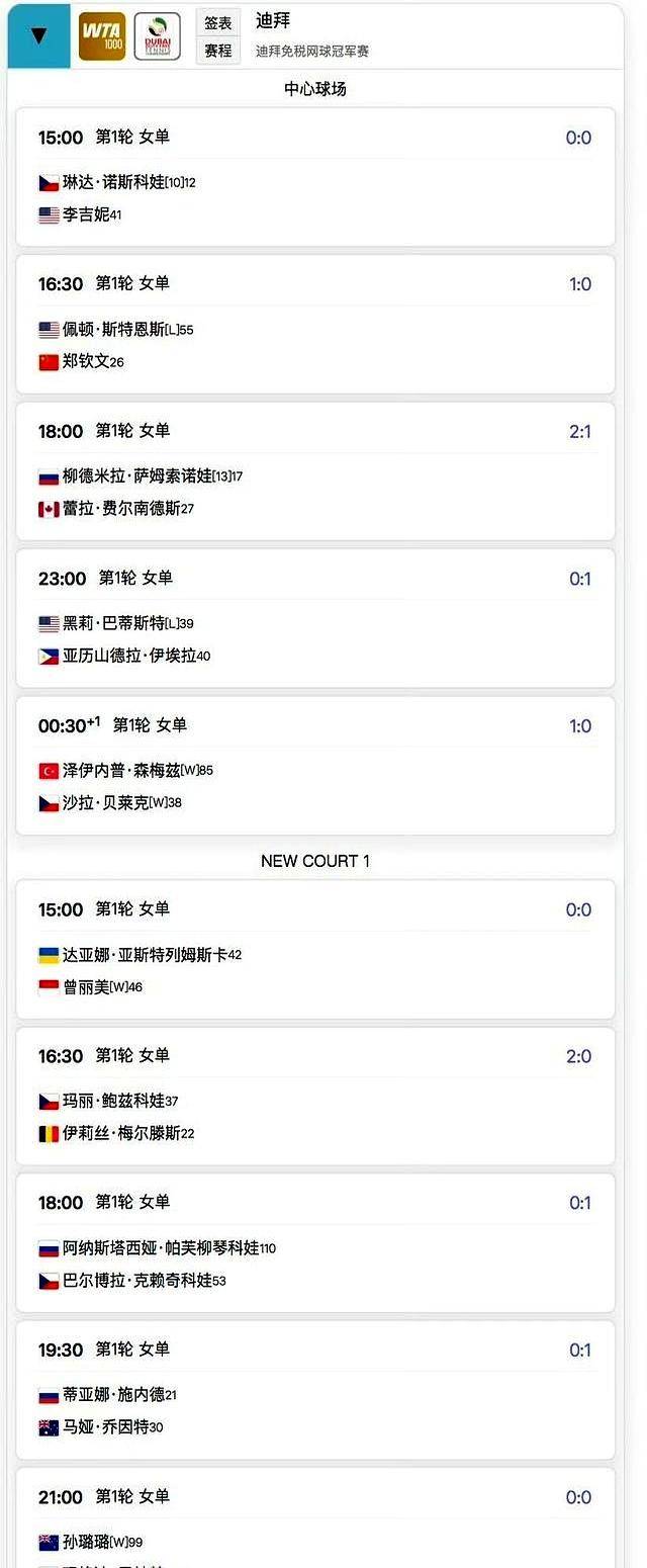 斯特恩斯这边倒是延续了“资格赛杀手”本色,今年已经连续三站从资格赛突围。但有个数据很微妙:她去年迪拜赛后面对左手将的战绩是0胜4负,而郑钦文恰恰是巡回赛里左手持拍最强的TOP20球员之一。更巧的是,迪拜站用球与多哈站同款,这对刚打完多哈的郑钦文来说,相当于考试连考同一套题库。